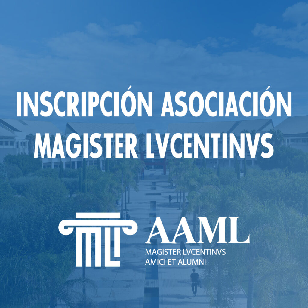 Trataremos sus datos para enviarle la información propia de la asociación y comunicaciones informando de actividades propias, así como del Magister Lvcentinvs y del Departamento de Derecho Mercantil y Procesal de la UA. Podremos utilizar sus datos para dirigirle encuestas de calidad o reputacionales que nos ayuden a mejorar la calidad de nuestros servicios o nuestra imagen como marca.